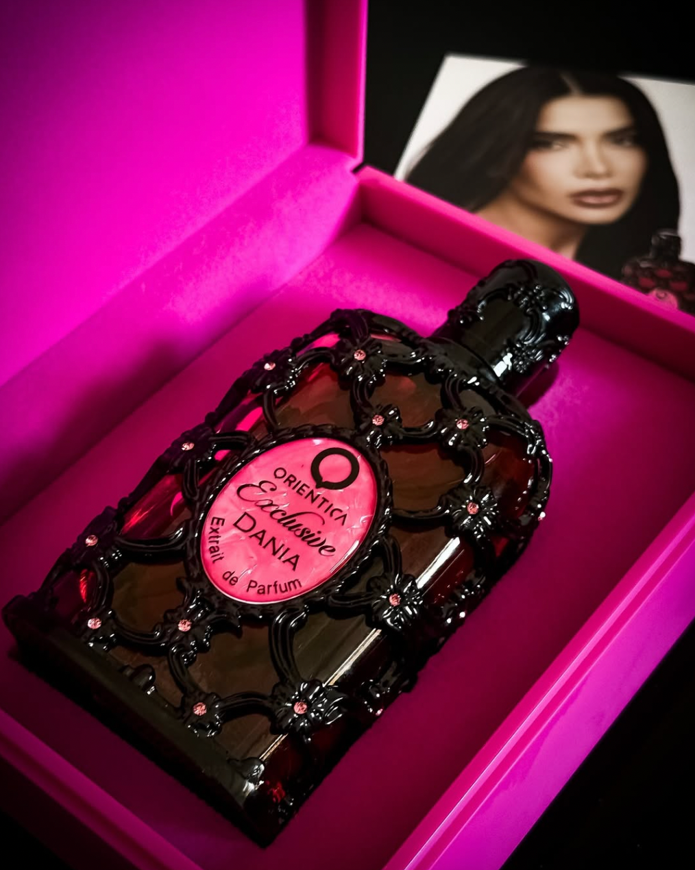 Colección de Lujo Exclusiva Dania, inspirada en la vibrante y carismática Dania Méndez. Un perfume de lujo que captura su personalidad enérgica y extrovertida en cada rociado. La fragancia se abre con una vibrante mezcla de naranja, gardenia y melocotón, que refleja el espíritu alegre y radiante de Dania.